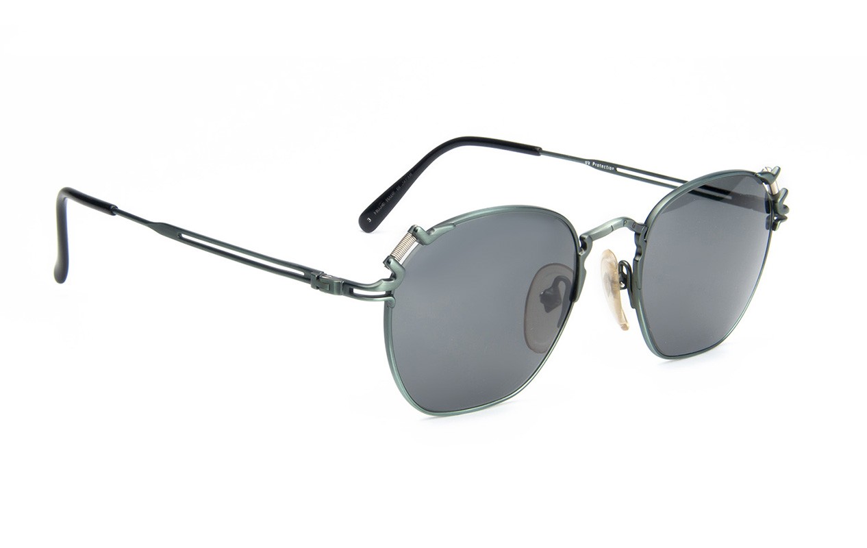 Occhiali da sole vintage Jean Paul Gaultier 56 3171. Questo modello degli anni ' 90 è elegante ed unico allo stesso tempo. Struttura in metallo leggero, meravigliosi dettagli sulle cerniere, design particolare per il ponte, intagliato con logo in JPG. Disponibile in differenti versioni